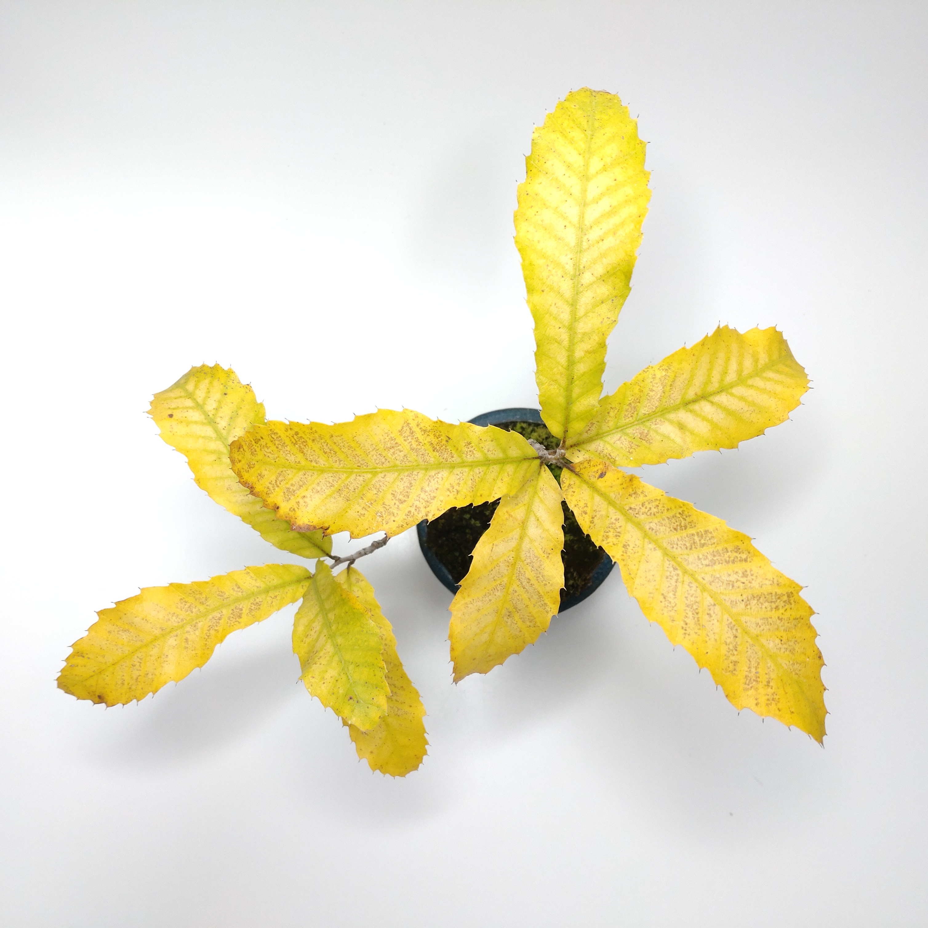 葉は互生、長楕円形で周囲には鋭い鋸歯が並び、新緑・黄葉が美しい。黄葉後に完全な枯葉になっても落ちず、2月くらいまで枝についていることがあります。