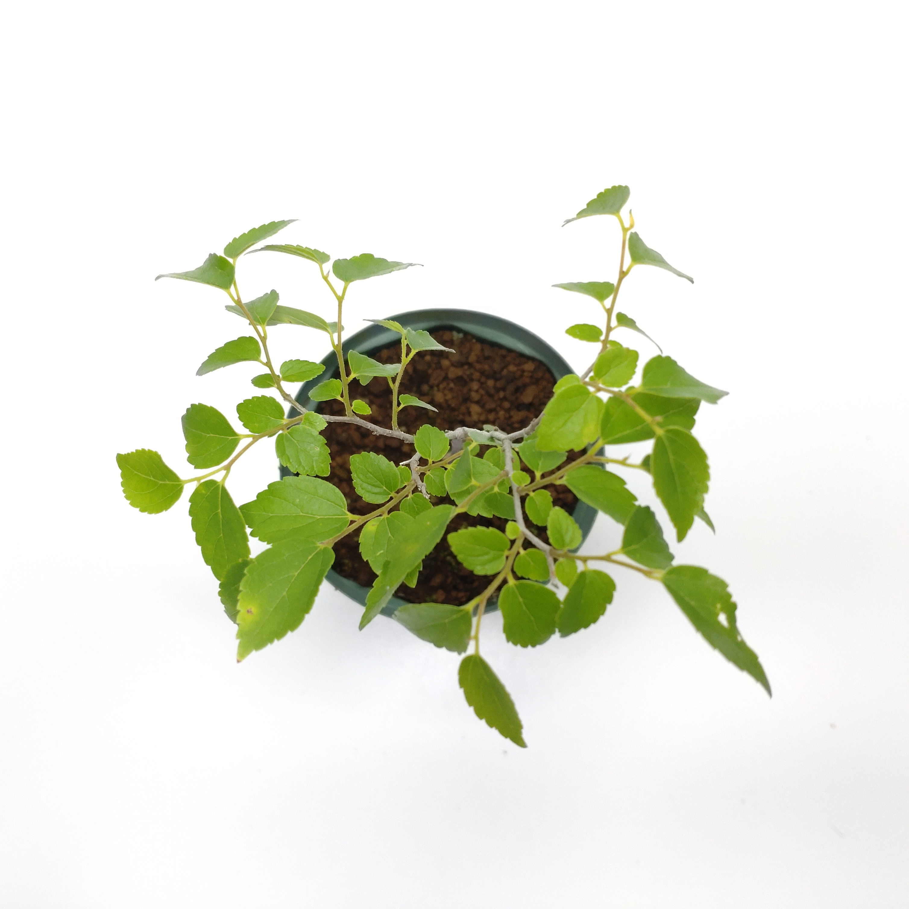 本州から九州までの山野に生える在来種です。枝が多いため、また機具の柄を作るため、エノキと名付けられました。エノキを現す榎は夏に樹陰が好まれることから作られた和字といわれています。盆栽では、ケヤキと共に半球形を描く独特のほうきづくりを楽しみます。また、寄せ植えも盆栽でとても人気です。