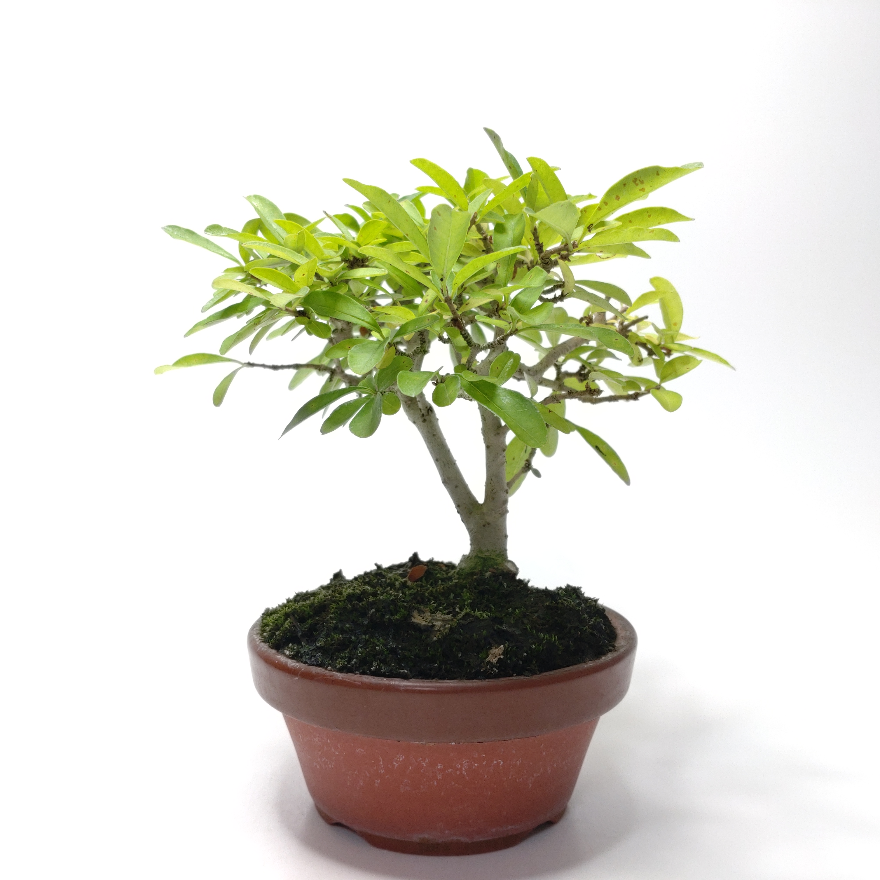 生長が早く、早い時期に幹がはぜて、古色感が出てきます。細かく繊細な枝が魅力で、葉刈りをこまめにすると、よく分枝して密になります。白い小花の房や、紫黒色に色づく実も、渋い味わいです。盆栽では、冬期の寒樹姿が人気です。